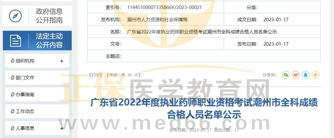 遼寧省2022年度執(zhí)業(yè)藥師職業(yè)資格考試成績(jī)合格人員公示
