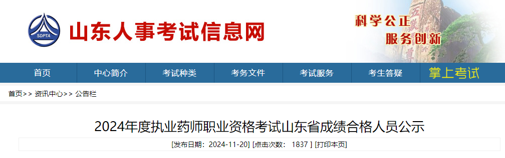 1.2024年度執(zhí)業(yè)藥師職業(yè)資格考試山東省成績合格人員名單(請前往官網(wǎng)查看)