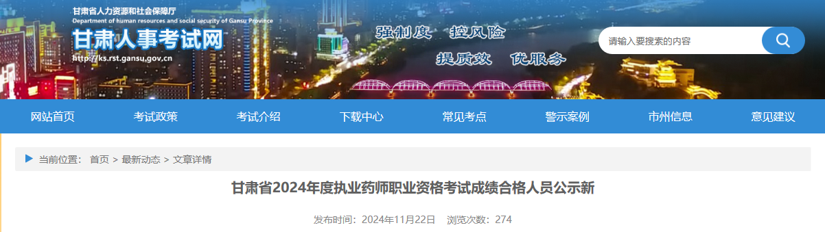 2024年度執(zhí)業(yè)藥師職業(yè)資格考試成績(jī)已在中國(guó)人事考試網(wǎng)(www.cpta.com.cn)公布。