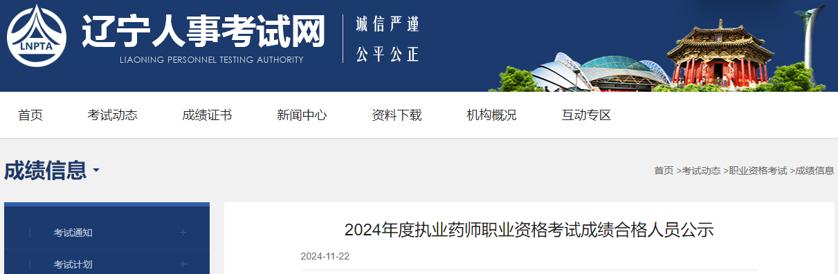 【遼寧】2024年度執(zhí)業(yè)藥師職業(yè)資格考試成績合格人員公示