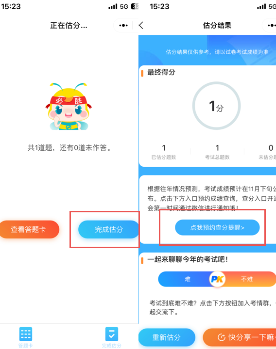 二、手機(jī)端用戶:點(diǎn)擊"開始估分>",即可進(jìn)入小程序開始估分啦!