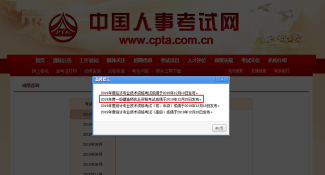 2019年一級(jí)建造師職業(yè)資格考試成績(jī)公布時(shí)間:2019年12月25日