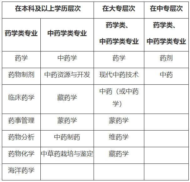 報(bào)考條件中要求的“藥學(xué)類、中藥學(xué)類專業(yè)”,按照國務(wù)院學(xué)位委員會(huì)、教育部印發(fā)的《學(xué)位授予和人才培養(yǎng)學(xué)科目錄設(shè)置與管理辦法》《普通高等學(xué)校高等職業(yè)教育(??疲I(yè)設(shè)置管理辦法》和《學(xué)位授予和人才培養(yǎng)學(xué)科目錄》《普通高等學(xué)校本科專業(yè)目錄(2012年)》《普通高等學(xué)校高等職業(yè)教育(??疲I(yè)目錄(2015年)》等規(guī)定,對照學(xué)科目錄來界定。