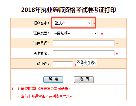 2018年重慶市執(zhí)業(yè)藥師考試準(zhǔn)考證打印入口:http://zg.cpta.com.cn/examfront/admissionNoLogin!initfind.action