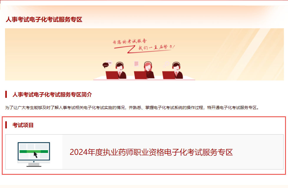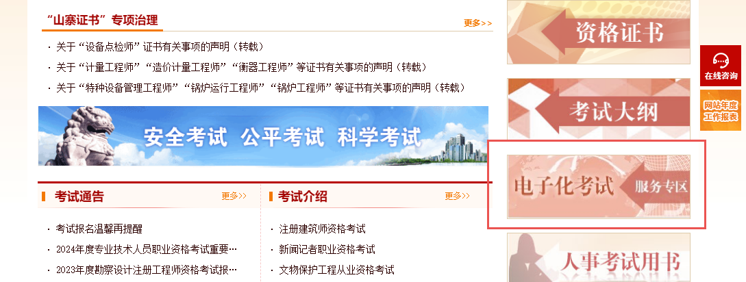 1、登錄 中國人事考試網(wǎng)> ,點擊“電子化考試服務(wù)專區(qū)”