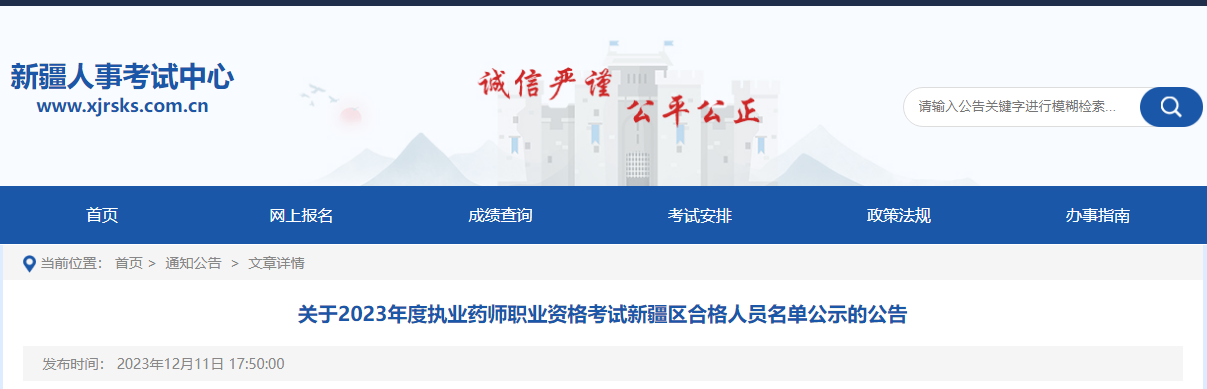 【新疆】2023年執(zhí)業(yè)藥師職業(yè)資格考試新疆區(qū)合格人員名單公示公告