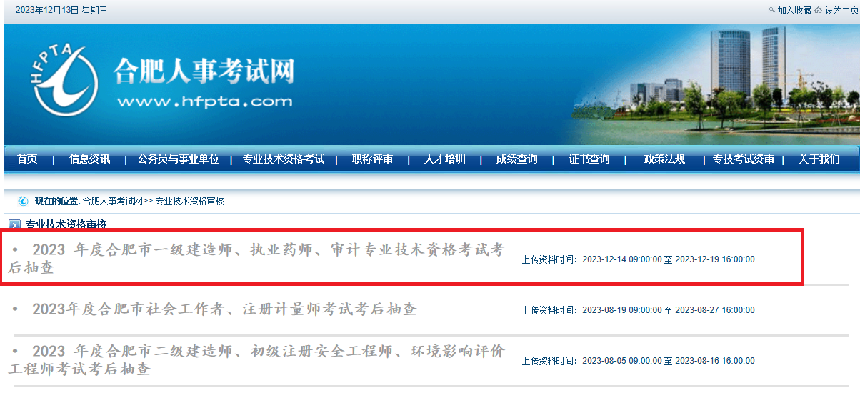 抽查工作采取線上審核方式進(jìn)行。考試成績(jī)合格者(名單見附件5)需在12月14日至19日登錄合肥人事考試網(wǎng)(www.hfpta.com),按要求上傳相關(guān)證明材料。步驟如下: