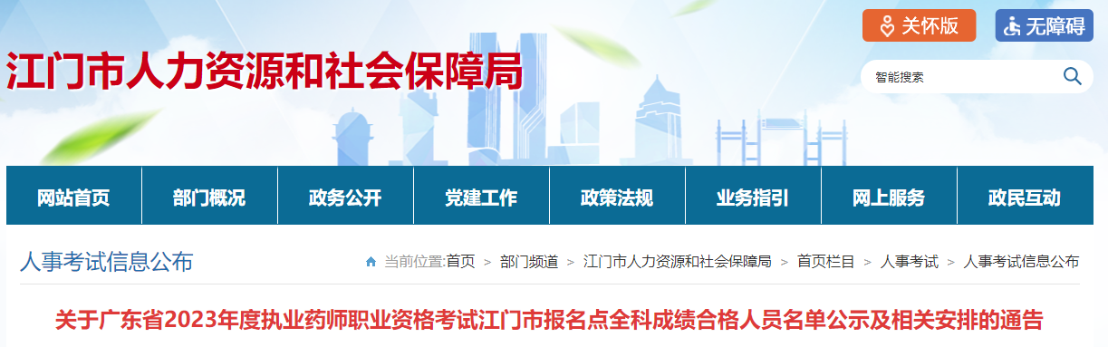 【廣東江門】2023年執(zhí)業(yè)藥師考試全科成績合格人員名單公示及證書發(fā)放通知