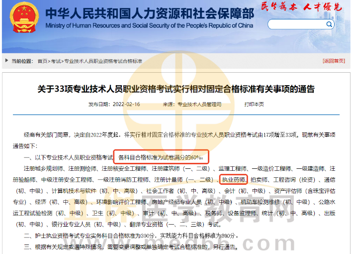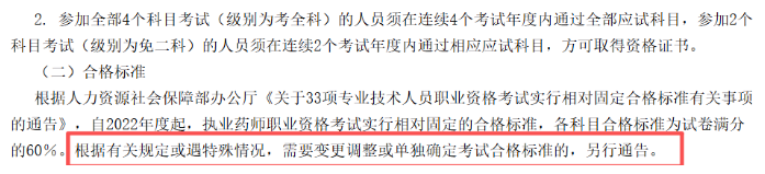 自2022年起,執(zhí)業(yè)藥師考試實行相對固定的合格標準,各科目合格標準為試卷滿分的60%:即試卷滿分為100分的話,科目成績≥60分就算合格。