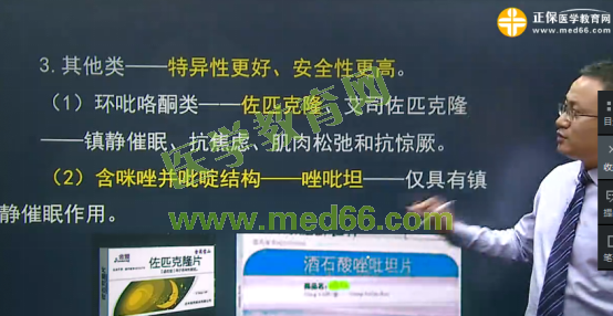 含有咪唑并吡啶結(jié)構(gòu)的唑吡坦,僅具有鎮(zhèn)靜催眠作用,而無(wú)抗焦慮、肌肉松弛和抗驚厥等作用。