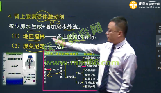 腎上腺素受體激動(dòng)劑包括地匹福林、溴莫尼定。地匹福林是腎上腺素的前藥,具有良好的親水、親脂性,更好的滲入到前房,易于吸收,相比腎上腺素更快速地透過(guò)角膜,然后轉(zhuǎn)化為活性成分而發(fā)揮藥理作用。