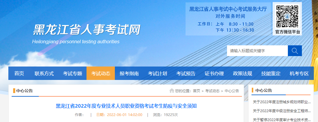近期,小編查詢各地區(qū)人事考試官網(wǎng),發(fā)現(xiàn)黑龍江省人事考試中心發(fā)布了《黑龍江省2022年度專業(yè)技術(shù)人員職業(yè)資格考試考生防疫與安全須知》的通知,為了幫助考生們了解,小編為大家整理如下!
