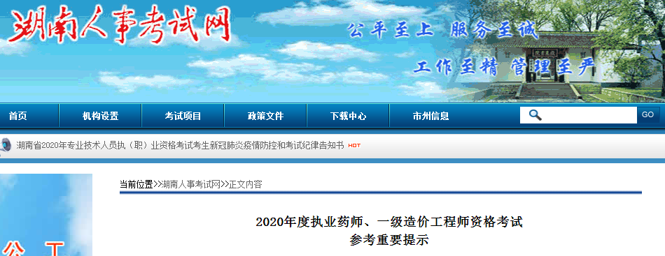 湖南人事考試網(wǎng):2020年執(zhí)業(yè)藥師資格考試參考重要提示