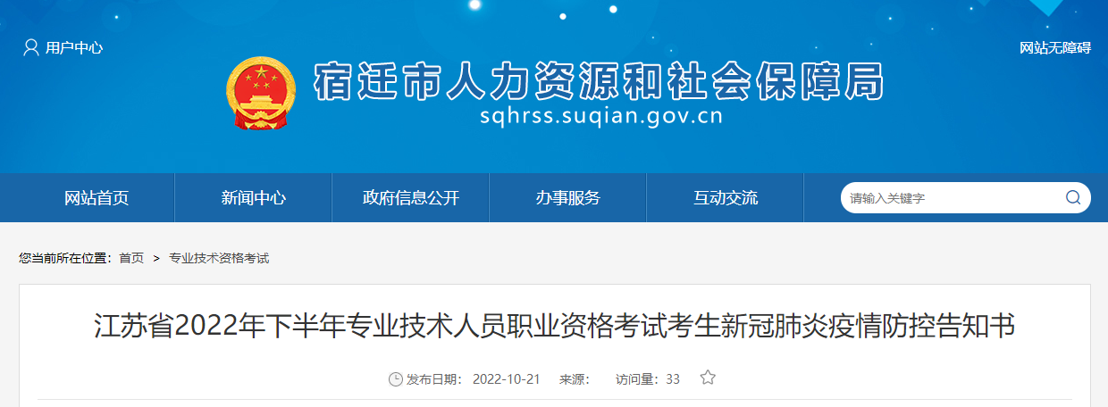 江蘇省宿遷市2022年下半年專業(yè)技術(shù)人員職業(yè)資格考試考生新冠肺炎疫情防控告知書