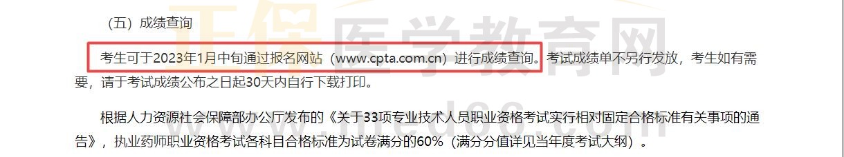 2022年11月11日,國家藥品監(jiān)督管理局執(zhí)業(yè)藥師資格認證中心官網(wǎng)發(fā)布通知:2022年執(zhí)業(yè)藥師考試成績發(fā)布時間預計在2023年1月份!