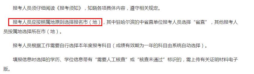 按照考試規(guī)定,報名按照就近原則,在所在的省直或市考區(qū)報名。各市市屬單位人員請按屬地原則,網(wǎng)上報名時選擇所在市報名點進行報考。XX市屬單位考生選擇“XX市”報名點進行報考。屬于省直或省屬單位(單位名稱冠“XX省”或在省或國家工商行政管理局注冊)、中央駐X單位、駐X部隊單位人員,網(wǎng)上報名時應選擇“省直”報名點進行報考。非在X的省直單位報考人員按屬地原則選擇在回所在市報名點進行報名。