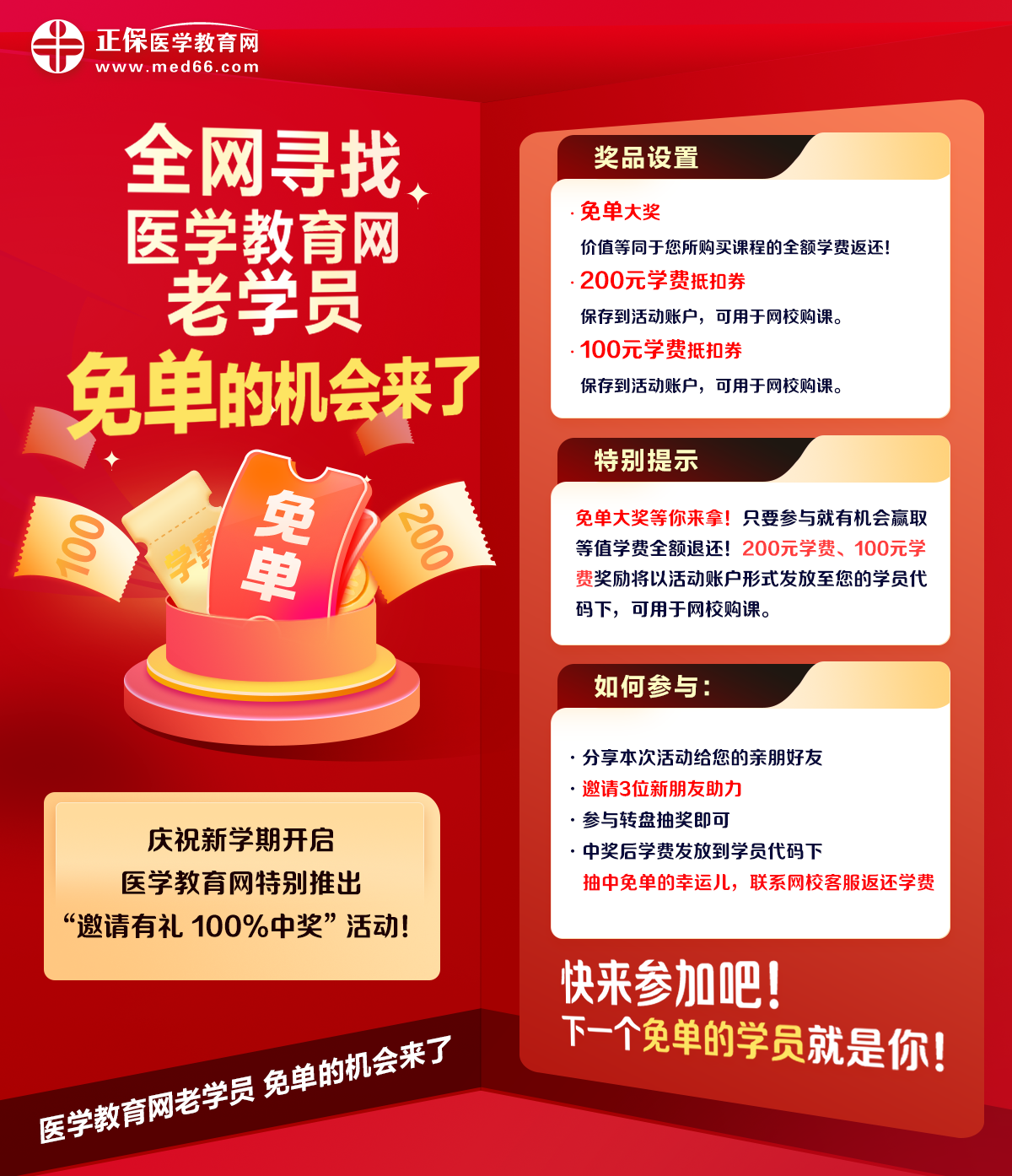 醫(yī)學(xué)教育網(wǎng)學(xué)員集合:抽獎贏免單,100%中獎,購課更劃算!