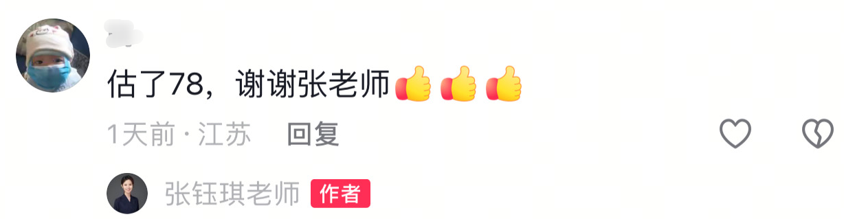 網(wǎng)校學(xué)員考后說道:估了78,謝謝張老師!評(píng)價(jià)看下圖↓↓