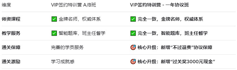 A/B班同款師資課程,疊加“不過退費(fèi)”與“過關(guān)有獎(jiǎng)”雙保險(xiǎn),助你安心通關(guān)!
