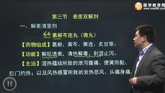 | 2.解表清里劑:葛根芩連丸(微丸)、雙清口服液 | (1)各成藥的功能、主治、用法用量、使用注意,與各單元功能相似成藥的鑒別應(yīng)用 (2)葛根芩連丸(微丸)的藥物組成、配伍意義 | ||