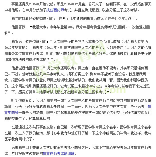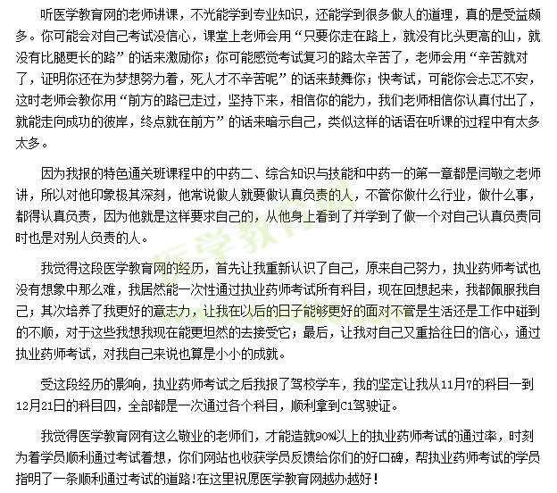 2016我的執(zhí)業(yè)藥師之路---分享經(jīng)醫(yī)學教育網(wǎng)培訓順利通過執(zhí)業(yè)藥師考試的感受