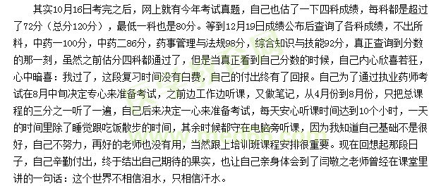 說實在的,聽到這句話,當時心里為之一顫,感覺身體瞬間有種無形的力量在推動自己在執(zhí)業(yè)藥師考試路上向前進,自己又多了份信心。