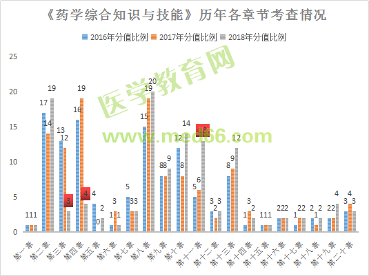 總體來(lái)講,《藥學(xué)綜合知識(shí)與技能》無(wú)論從試題形式還是考點(diǎn)內(nèi)容方面均有較大調(diào)整,但復(fù)習(xí)的重點(diǎn)仍是第二、三、四、八,九、十、十一、十三章八個(gè)章節(jié),總分值達(dá)94分,仍占絕對(duì)優(yōu)勢(shì)。