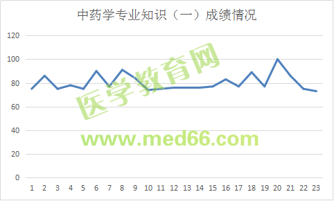 由以上數(shù)據(jù)我們可以看出,醫(yī)學(xué)教育網(wǎng)原創(chuàng)這批考生中藥學(xué)專業(yè)知識(shí)(一)成績(jī)?cè)?0左右的非常多,占比很大,超過(guò)及格線不止一點(diǎn)點(diǎn)!