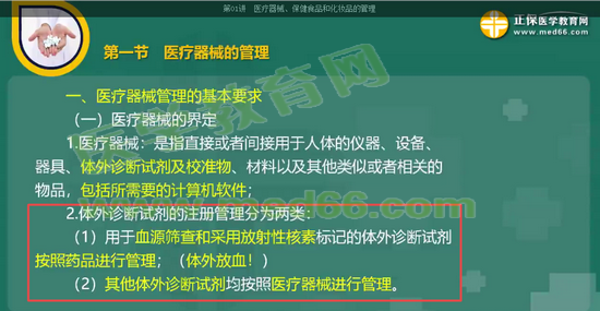 試題:10.醫(yī)療器械是直接或者間接作用于人體的儀器、設備、器具,體外診斷試劑及校準物、材料以及其他類似或相關的物品,關于醫(yī)療器械管理要求的說法,錯誤的是:體外診斷試劑按照《體外診斷試劑注冊管理辦法》辦理醫(yī)療器械產(chǎn)品備案或者注冊
