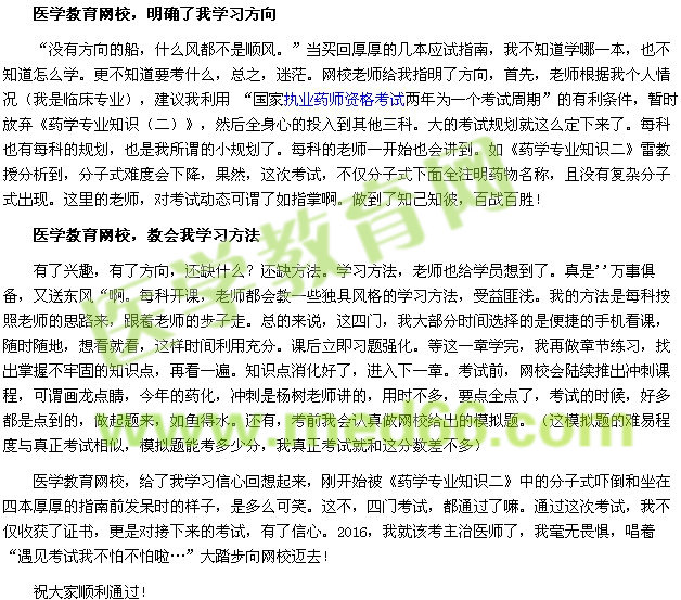 我的執(zhí)業(yè)藥師之路--醫(yī)學(xué)教育網(wǎng)校,我們的朋友(學(xué)員4234***)