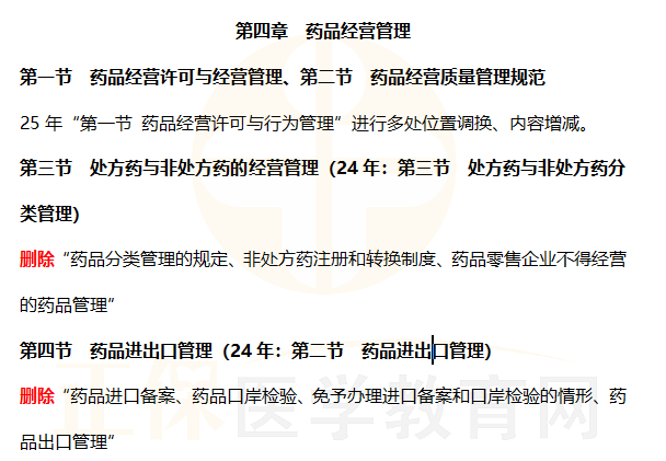 2025年執(zhí)業(yè)藥師《藥事管理與法規(guī)》教材變動分析