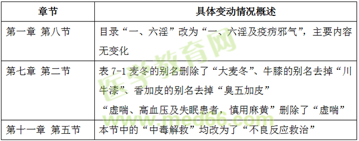 1、《中藥學專業(yè)知識(一)》教材具體變化情況如下: