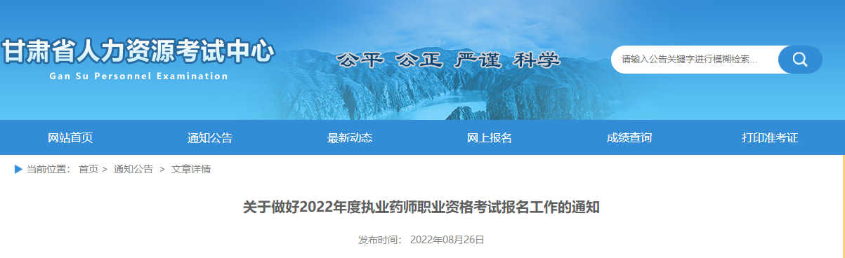 甘肅省2022年度執(zhí)業(yè)藥師職業(yè)資格考試公告