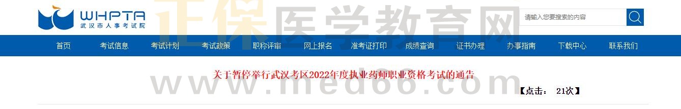 湖北武漢人事考試院發(fā)布了《關(guān)于暫停舉行湖北武漢考區(qū)2022年度執(zhí)業(yè)藥師職業(yè)資格考試的通告》,具體通知內(nèi)容如下: