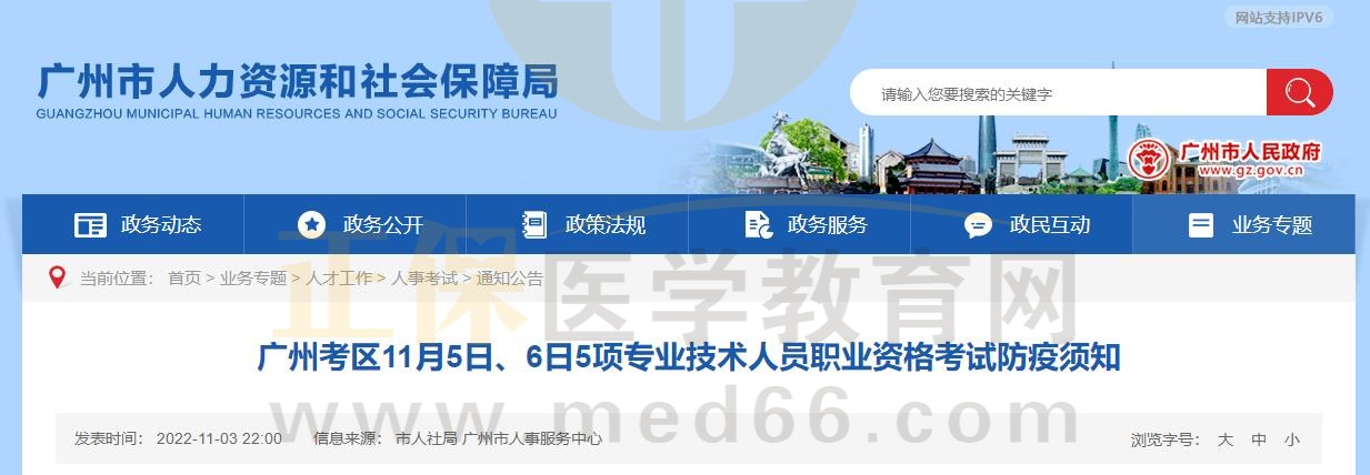 廣東廣州人力資源和社會保障局發(fā)布了《廣州考區(qū)11月5日、6日5項專業(yè)技術人員職業(yè)資格考試防疫須知》,具體通知內容如下: