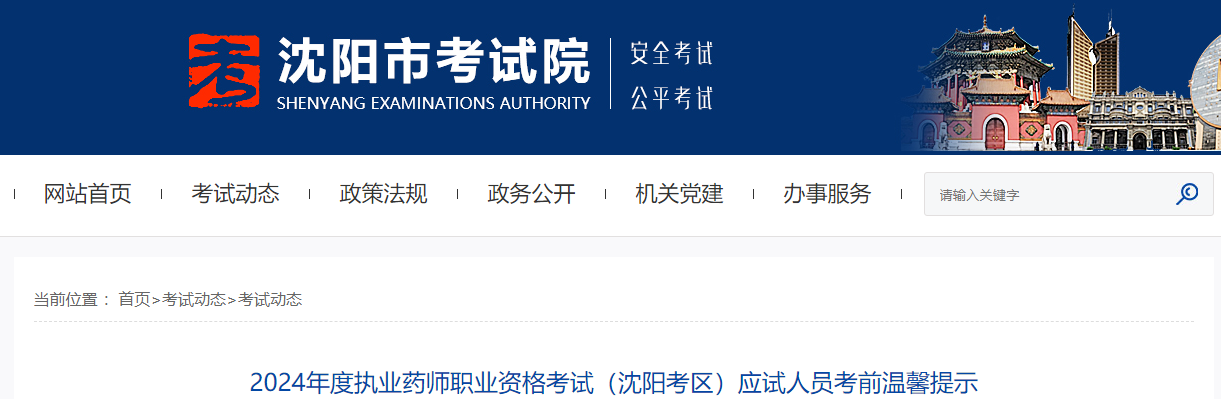 【遼寧沈陽】2024年度執(zhí)業(yè)藥師考試(沈陽考區(qū))應試人員考前溫馨提示