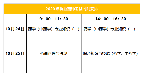 2020年執(zhí)業(yè)藥師考試時間: