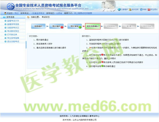 界面左側(cè)顯示狀態(tài)信息,右側(cè)顯示操作提示,請報考人員參考上述信息進(jìn)行相關(guān)操作,直到報名完成。