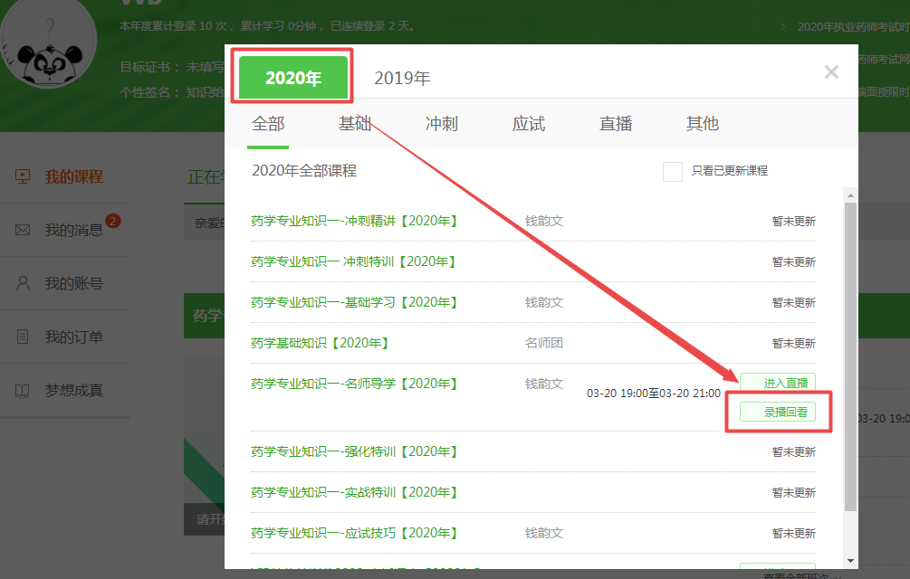 2020年執(zhí)業(yè)藥師看課流程--電腦端講義下載!