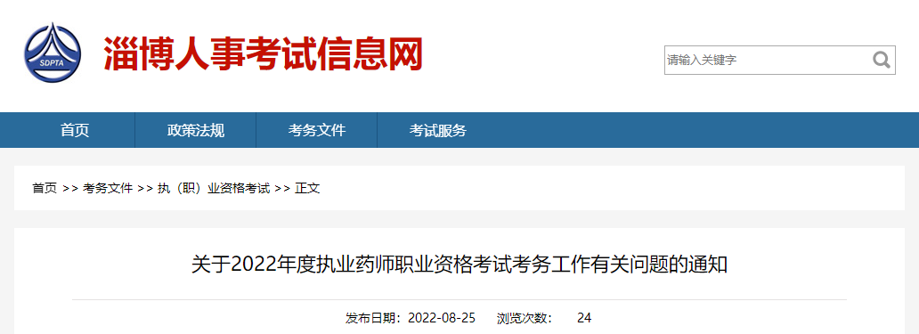 淄博關(guān)于2022年度執(zhí)業(yè)藥師職業(yè)資格考試考務(wù)工作有關(guān)問題的通知