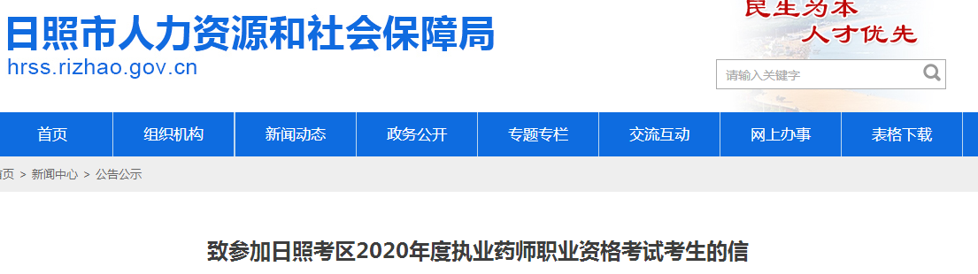 日照人社局:致參加日照考區(qū)2020年執(zhí)業(yè)藥師考生的信!