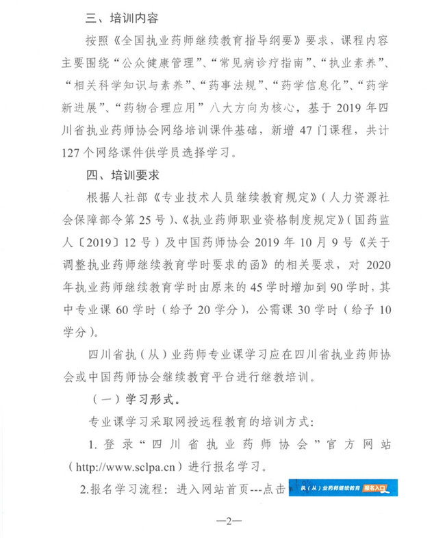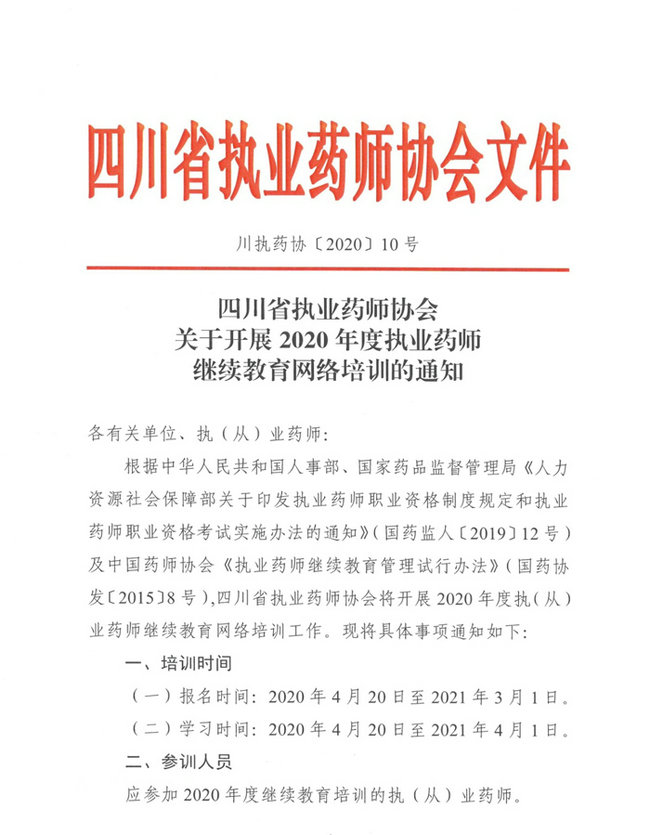 2020年四川省執(zhí)業(yè)藥師繼續(xù)教育培訓(xùn)工作的通知