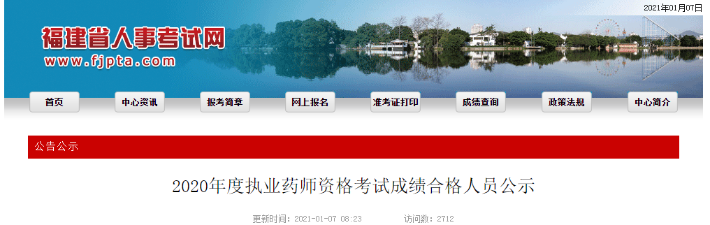 福建2020年執(zhí)業(yè)藥師考試成績(jī)合格人員公示(3258人合格)