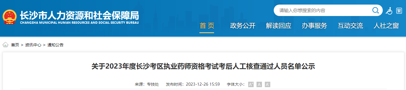 【湖南長沙】關(guān)于2023年執(zhí)業(yè)藥師資格考試考后人工核查通過人員名單公示