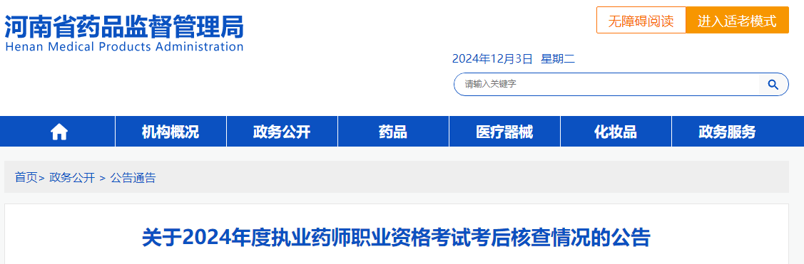 【河南】2024年執(zhí)業(yè)藥師考試考后核查情況的公告