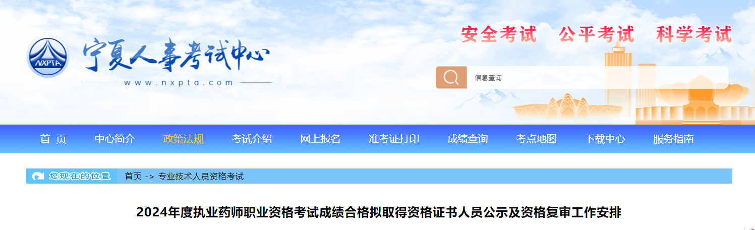 【寧夏】2024年執(zhí)業(yè)藥師成績合格擬取得資格證書人員公示及資格復審工作安排