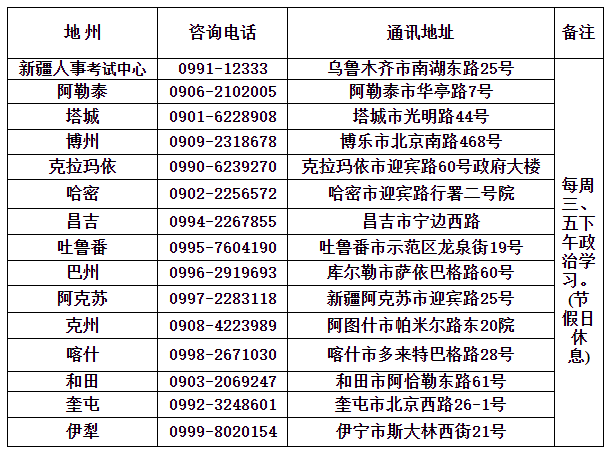 新疆各地州考試中心咨詢(xún)電話(huà)及通訊地址!