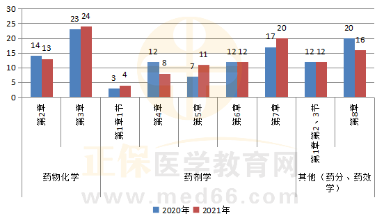 下面通過表格來直觀分析一下《藥學(xué)專業(yè)知識(一)》中這三部分(藥物化學(xué)、藥劑學(xué)和其他)的分值比例情況。