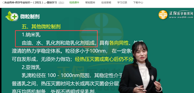 2021年《藥學(xué)專業(yè)知識一》課程涵蓋了大部分試題,以下列舉幾個老師講解考試考點(diǎn)相關(guān)內(nèi)容的截圖: