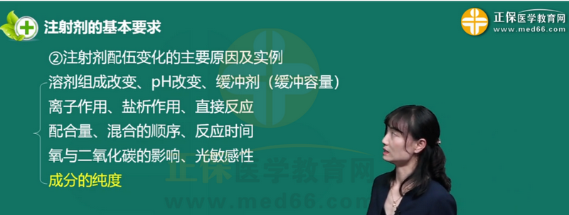 引起注射劑配伍變化的原因有:溶劑組成改變、pH的改變、緩沖容量、離子作用、混合順序
